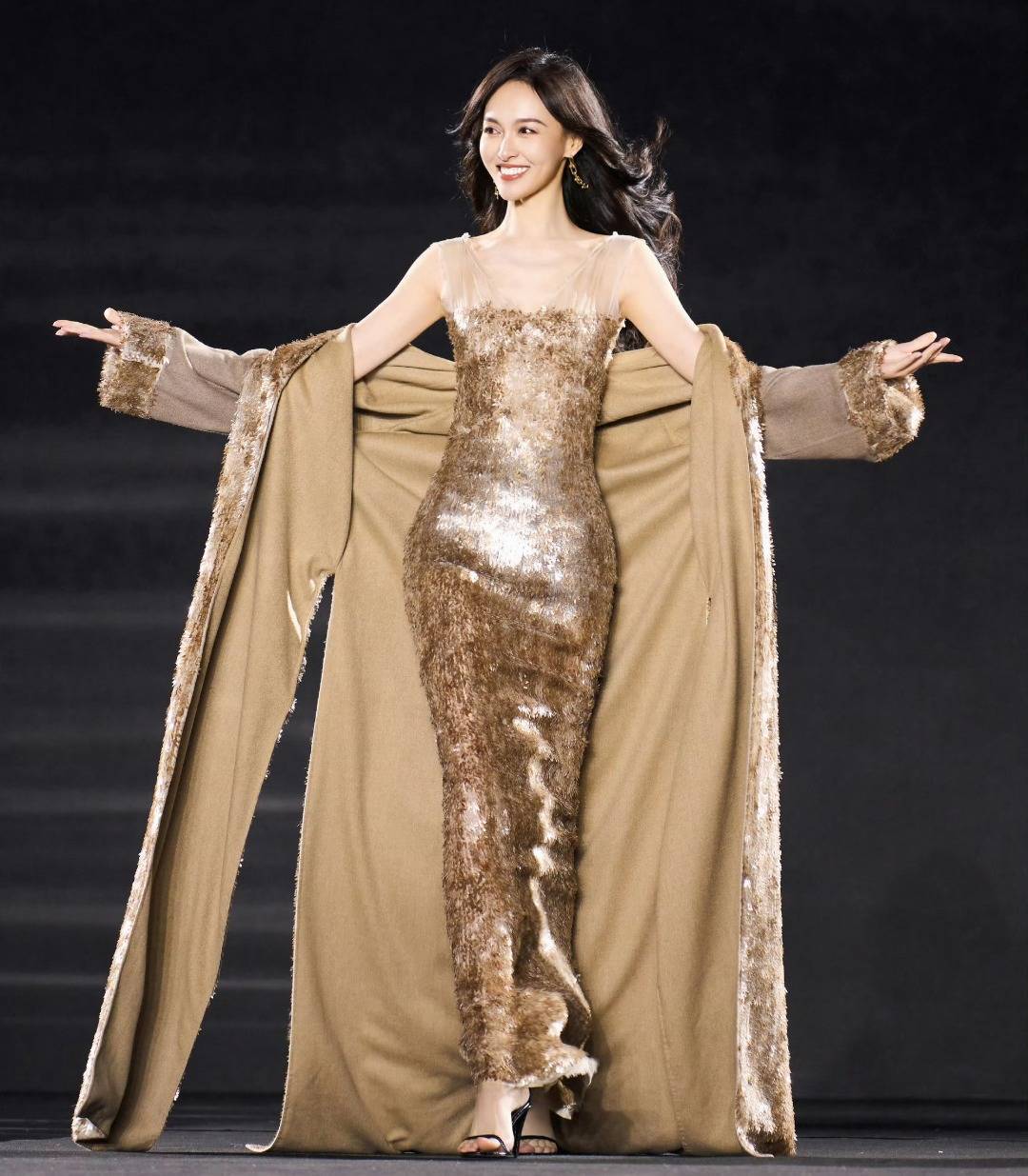 刘亦菲无疑是本届时装周的「定海神针」。即便穿着被吐槽「老气」的花瓣亮片裙,她依然凭借优越的骨相和清冷气质稳坐C位。外媒镜头里,她的皮肤细腻通透,下颌线清晰利落,笑起来时眼角的细纹反而增添了真实感。有网友调侃:「别人穿是影楼风,刘亦菲穿成了文艺复兴油画。」这种「乱穿都美」的底气,大概就是老天爷赏饭吃的最佳诠释。
